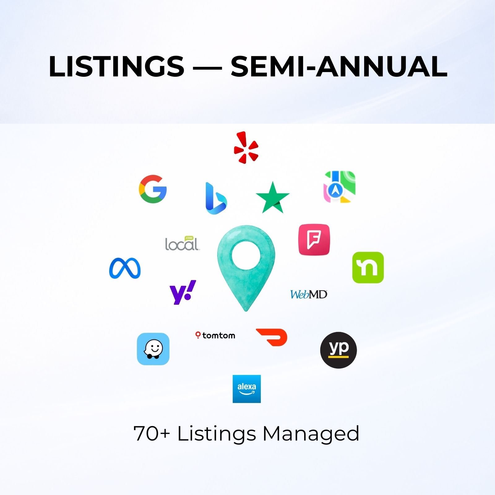 ✔️ Major directories (Yelp, Bing, Trustpilot, Foursquare)